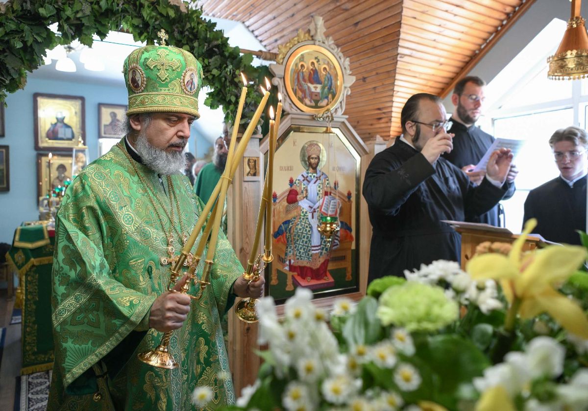 После заамвонной молитвы было совершено славление празднику в честь Святого Духа.