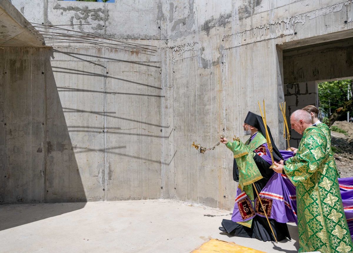 Затем Его Преосвященство возглавил чин на основание храма в честь Святой Троицы.